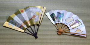 しかしこれは高価なことから、一回りサイズの小さい特に日本舞踊用に俗に舞扇(まいせん)と呼ばれる扇子を稽古では使用しています。