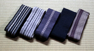 次が角帯です。これで実際に角帯の結び方を覚えて、帯に木剣を帯刀して稽古を行うことが出来ます。