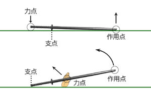 鍔を支点にして、柄頭を力点、鐺が作用点となります。